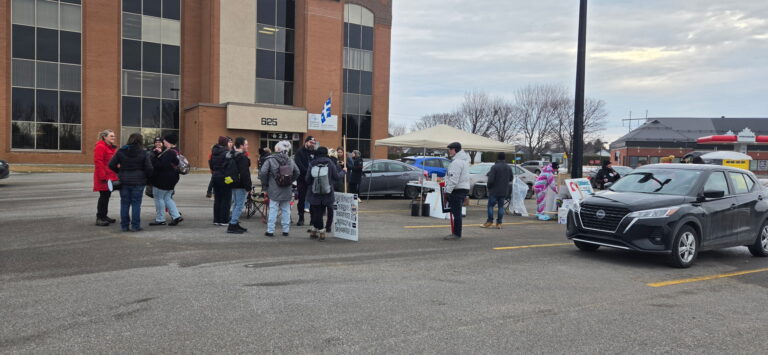 Ils étaient environ 150 à manifester devant le bureau de Donald Martel, à Bécancour, lundi, en lien avec le mouvement le Communautaire à boutte !